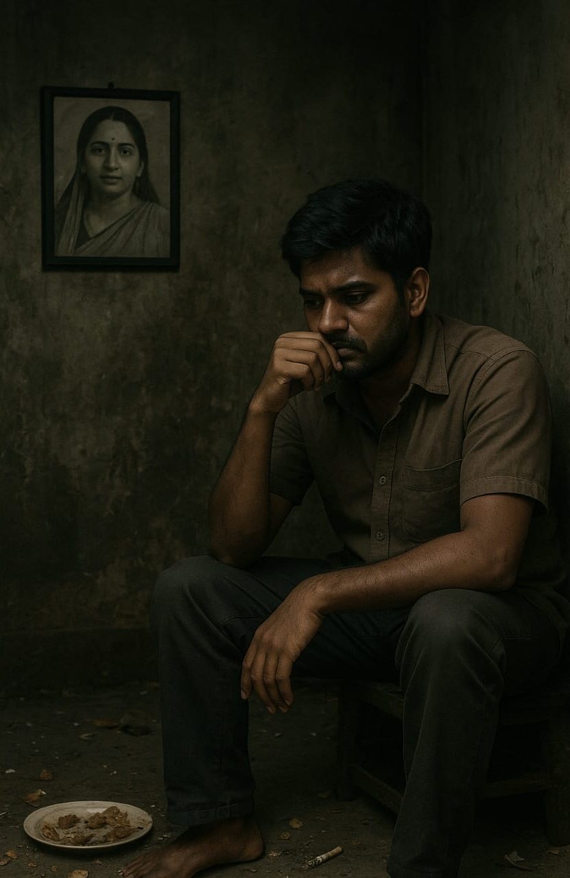 அறையினுள் திரும்பி வந்த முத்துவேல் தரையில் அமர்ந்துகொண்டான்.
