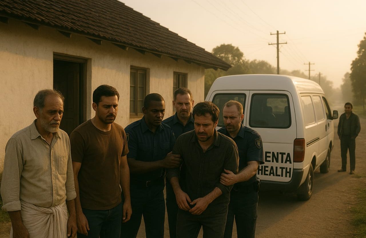 தெருக்கோடியில் மருத்துவமனை சீருடை அணிந்து நின்ற ஒருவன் துடித்துக்கொண்டிருந்த முத்துவேலின் உடம்பில் ஊசி ஒன்றைச் செலுத்தினான். முறுக்கிக்கொண்டிருந்த அவனது தசைகள் தளர்வது வரை அவனைத் திடமாக பிடித்து நின்றனர் மூவரும். பிறகு அங்கிருந்த டெம்போவினுள் அடிபட்ட மாட்டையென அவனை ஏற்றிக்கொண்டு புறப்பட்டனர்.