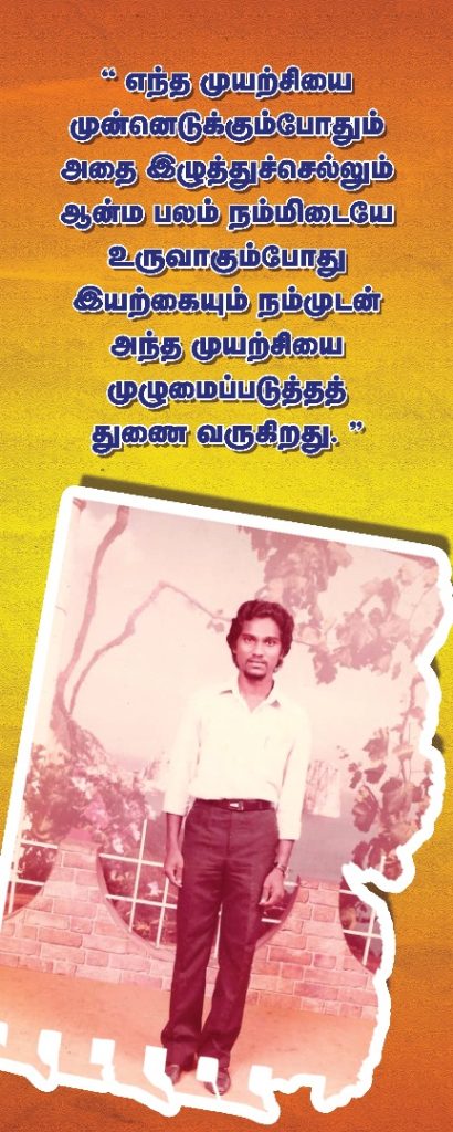 தனியனாக நின்று சமுதாயம் சார்ந்த பெருஞ்செயல்களாற்றும்போது பொது வெளியில் அது சார்ந்த மதிப்பிடல்கள், எதிர்வினைகள், குறை கூறல்கள் எழுவது மிக இயல்பானதே. மனத் திண்மையும் கொள்கையில் உறுதியும் உடையவர்கள் மட்டுமே இவற்றை எதிர்கொண்டு போராடி வெற்றி பெற முடியும். அத்தகைய பண்பு கொண்டவராகவே மூர்த்தி அவர்கள் விளங்கினார். வேலையிடத்தில் சக ஊழியர்களால் கொடுக்கப்பட்ட நெருக்கடி, ஆசிரியர்களிடமிருந்து எழுந்த எதிர்வினைகள், அதிருப்தி அடைந்தவர்கள் பேசிய அவதூறு என அடிப்படையின்றி எழுந்த எதிர்மறை செயல்பாடுகள் அனைத்தையும் நேர்மறையாக கையாண்டார். அப்படியே குறை குற்றம் இருப்பின் அதைச் சீர்தூக்கிப் பார்த்து தகுந்த நடவடிக்கைகள் எடுத்துத் திருத்தி கொள்ளும் பண்பு கொண்டவராகவும் மூர்த்தி விளங்கினார்.